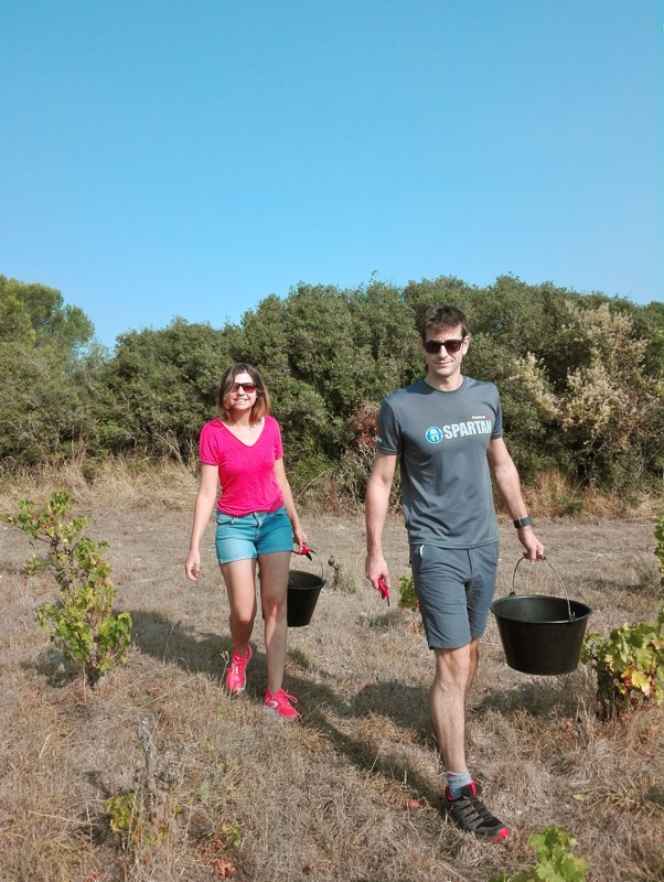 La météo, grande ordonnatrice de la vie vigneronne, a imprimé une fois de plus son emprise sur ces vendanges, sous le signe de la concentration : concentration accélérée des raisins, concentration maximale des vendangeurs dans le choix des grappes – l’ambiance était bien studieuse cette année-, concentration douce au pressoir pour ne pas abimer le raisin. Les amis présents, les enfants descendus de Paris, les grillades au ceps de vigne et les vins –bio- partagés, ce qui nous lie allège le poids des gestes, adoucit la fatigue accumulée. La vigne allégée de ses grappes prend des airs d’automne anticipé. Les Journées du Patrimoine, où j’interviendrai à nouveau dans mon village, approchent à grands pas, reliant une pratique viticole à son histoire, ses fondements aux Clos de Miège.