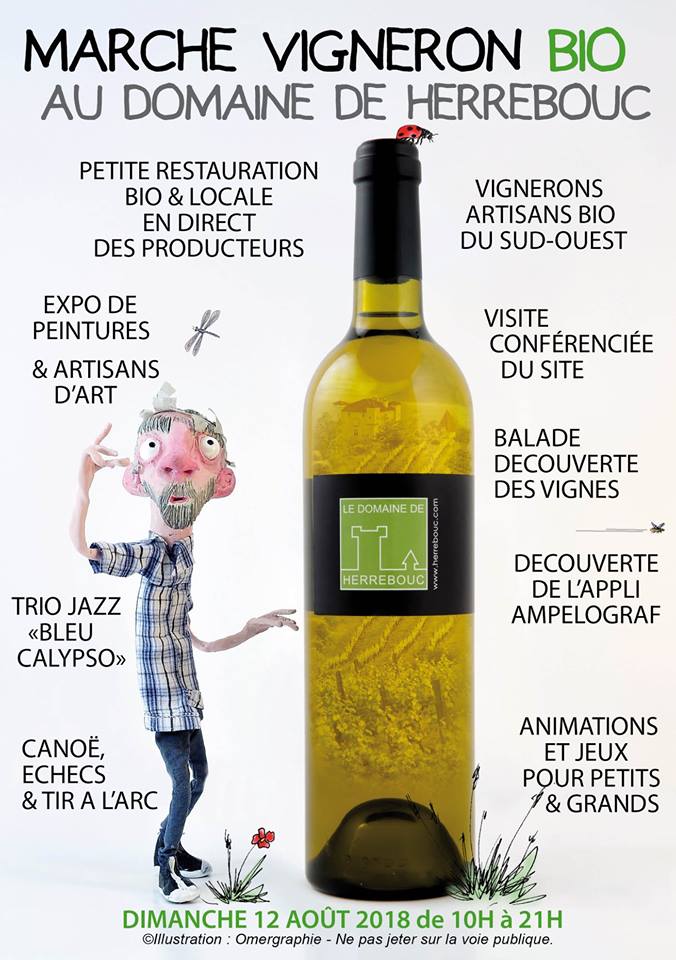 Rentrée côté manifestations, avec deux rendez-vous: vendredi 10 août aux Estivales de Montpellier, le grand événement de l’été viticole sur l’Esplanade où mes cuvées sont reçues à titre de vins patrimoniaux; dimanche 12 août, sur mes terres natales à l’invitation de mes amies du Domaine d’Herrebouc, la 4e édition de son marché mixera vins bio, art, patrimoine bâti (ah ! la Tour du XIIIe s. d’Herrebouc !) et viticole … Une culture joyeuse et généreuse avec Carine, Hélène et leur équipe.