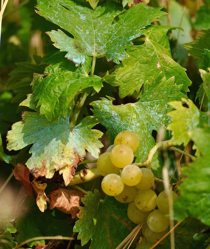 Déjà la reprise aux Clos de Miège ! Quelques jours pour souffler, après avoir beaucoup soufré contre l’oïdium [1], bête noire du muscat à petits grains, et contenu une attaque de mildiou, dévastatrice pour les vignobles français cette année. Grâce aux huiles essentielles d’écorces d’orange, venues fortifier les pieds et renforcer leurs défenses, et à la bouillie maison, à l’eau de mer, nous avons pu limiter l’usage de sulfate de cuivre, dont nous nous étions passé pendant deux campagnes, mais nécessaire contre le mildiou [2].