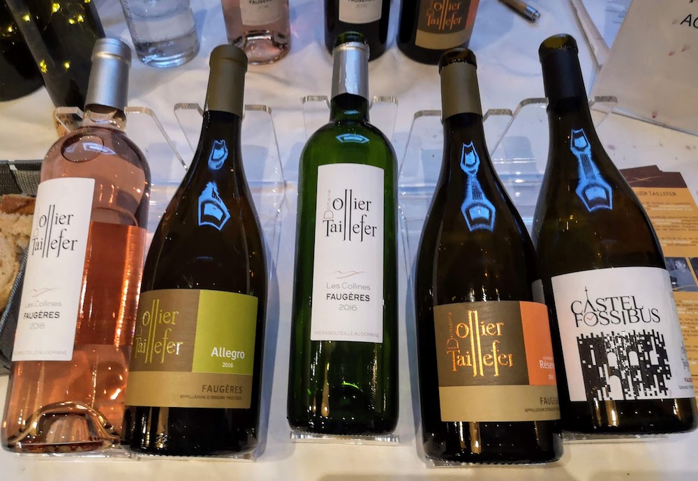 D’une cuvée, jaillit tout à coup un patrimoine. Au Château Beaubois à Franquevaux en Costières (Gard), Fanny Boyer-Molinié renoue avec une tradition régionale, celle de la toile de Nîmes qui a donné naissance au jean américain, avec un flacon militant, pour relocaliser la production du textile dans son berceau. La cuvée collector Ramenons le Denim à la maison, née de sa rencontre avec Guillaume Sagot, des Ateliers de Nîmes, se pare du célèbre bleu pour en porter la renommée. Patrimoine d’un terroir, Castel fossilibusde Françoise Ollier à Fos (Hérault) exprime avec ses notes fumées, grillées la quintessence du schiste sur les plus vieilles vignes du domaine, dont les racines se perdent dans le sol feuilleté du Faugérois. L’AOP, à 50% bio, affiche ses Grands Vins de Nature . Les galets roulés, les marnes alluvionnaires de Séverine Bourrier, au Château de l’Ou, à Montescot (Pyrénées-Orientales) allient fraîcheur, minéralité et puissance sur ses vins blancs. Quant aux schistes-mosaïques du domaine, à Maury, ils engendrent puissance et finesse sur un grenache Rhapsodyou sur une cuvée emblématique des Vinifilles : Compartir (partager en catalan). Quelle plus belle conclusion à cette soirée scintillante que la cuvée Male de Valérie Tabariès-Ibanez, aux notes de cacao fondus, puissantes, à garder dix ans au moins. Un des plus beaux Languedoc-Grés de Montpellier, encore récompensé d’or à Millésime Bio.