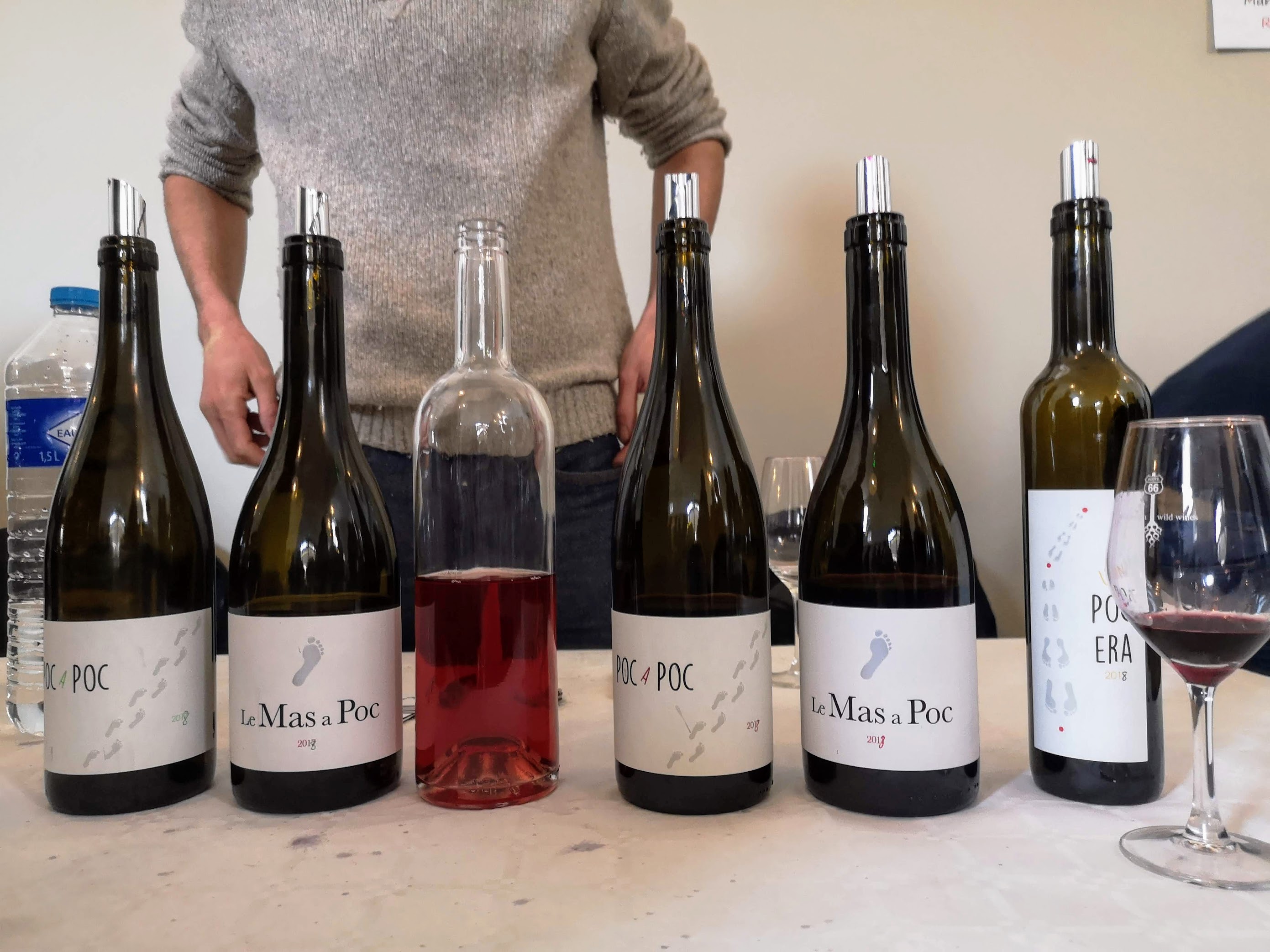 Carignan blanc, carignan gris ressurgissent aux côtés des incontournables grenache et maccabeu. Un Juste ciel fin, un peu salé, soyeux de La petite Baigneuse, sur de très vielles vignes, dont 40 % franc de pied[1], est élaboré sur des parcelles, les plus pauvres, données autrefois aux ouvriers agricoles de grands domaines. Le sol de schiste noir drainant en haut d’un coteau plein nord ne fait pas plus de 15-20 cm d’épaisseur avant la roche ! Au pied des châteaux cathares, Xavier Ponsart élabore des blancs aux notes de fruits exotiques (c’est le grenache gris) et à la vivacité du maccabeu. Poc à Poc, petit à petit, il fait son nid.