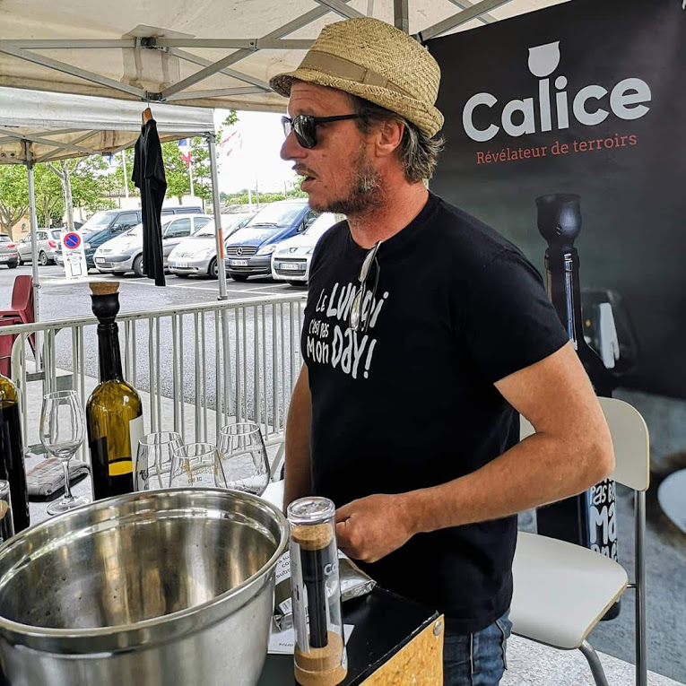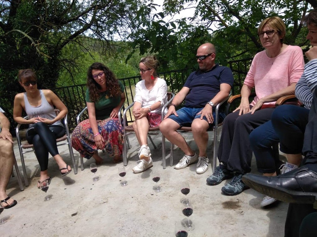 A l’occasion de #piedsnusdanslherbe2, manifestation qu’il organisait chez le vigneron Vincent Bonnal à Bédarieux (Hérault), Franck Kukuc le Buveur de poèmes nous proposait, le 9 juin, une sophro-dégustation, expérience mêlant des exercices de sophrologie et la découverte d’un vin par l’éveil des cinq sens. Sous les mots distillés par Myriam, sophrologue, nos facultés, aiguisées, s’ouvrent à la découverte. Yeux mi-clos, ouïe, accompagnée du chant des oiseaux dans l’arbre proche, odorat et goût grands ouverts sur l’écoute de nos sensations propres, nous progressons dans notre perception, dans l’interprétation intérieure de nos ressentis sensoriels. Entendre le vin, toucher le vin (j’y aurais bien trempé les doigts !), pas à pas ouvrir toutes les portes.