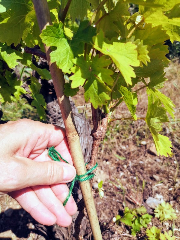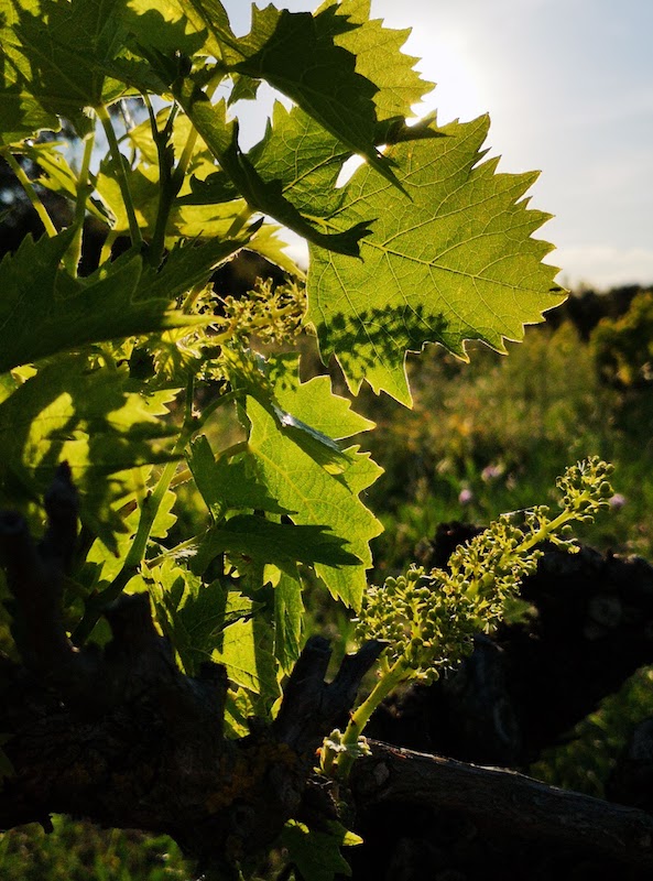 Il y a dans ces travaux viticoles printaniers un bonheur, une nourriture de l’esprit qui, à l’image de l’harmonie vers laquelle ils tendent avec leur environnement, équilibrent la pensée et le corps, même fourbu sur une vigne basse de vieux muscat. En taillant, épamprant ou plantant un piquet, il n’est pas rare de s’arrêter sur un insecte, une nouvelle espèce végétale descendue de la garrigue, une lumière sur la vigne, son odeur en pleine floraison, un reflet fugitif à saisir avec l’appareil photo, jamais loin du sécateur. Le temps ne se mesure plus en productivité, les heures se font oublier. Un bien-être envahit, qui n’est pas de l’ordre de la possession, de l’accumulation de richesses, mais d’un accord, avec le monde environnant et avec soi-même.
